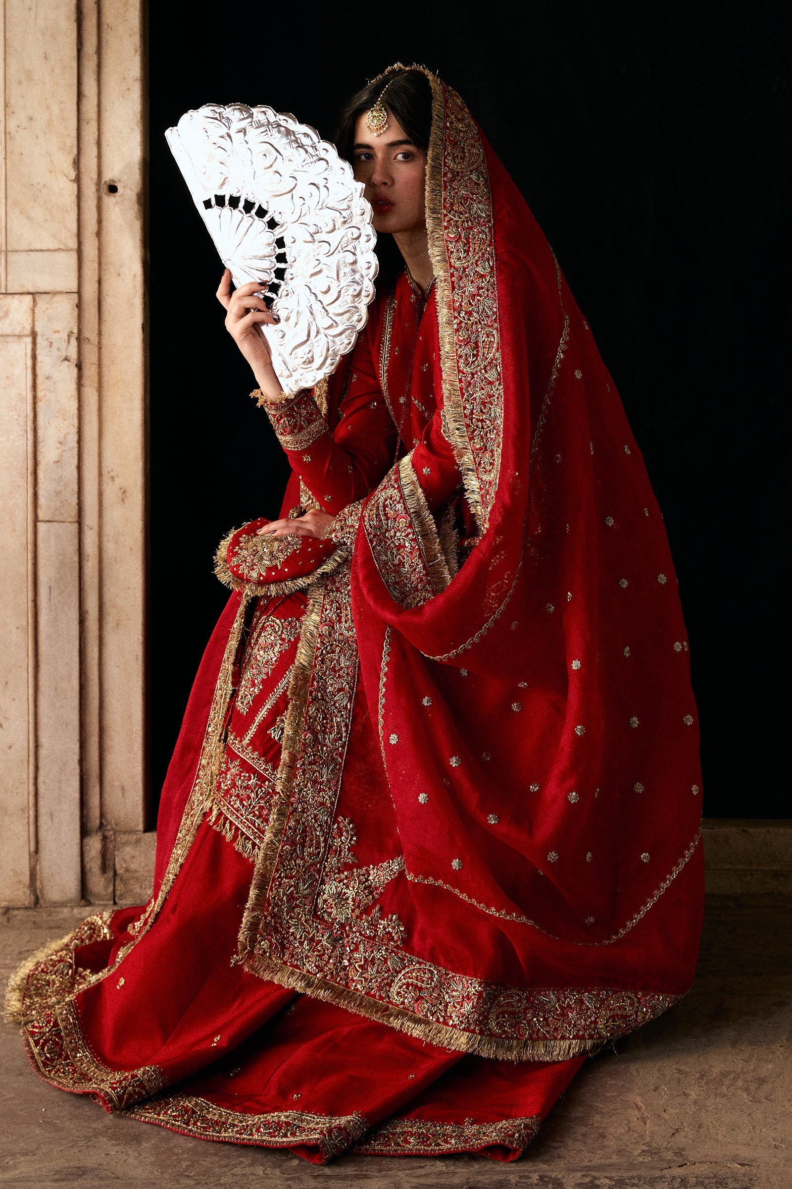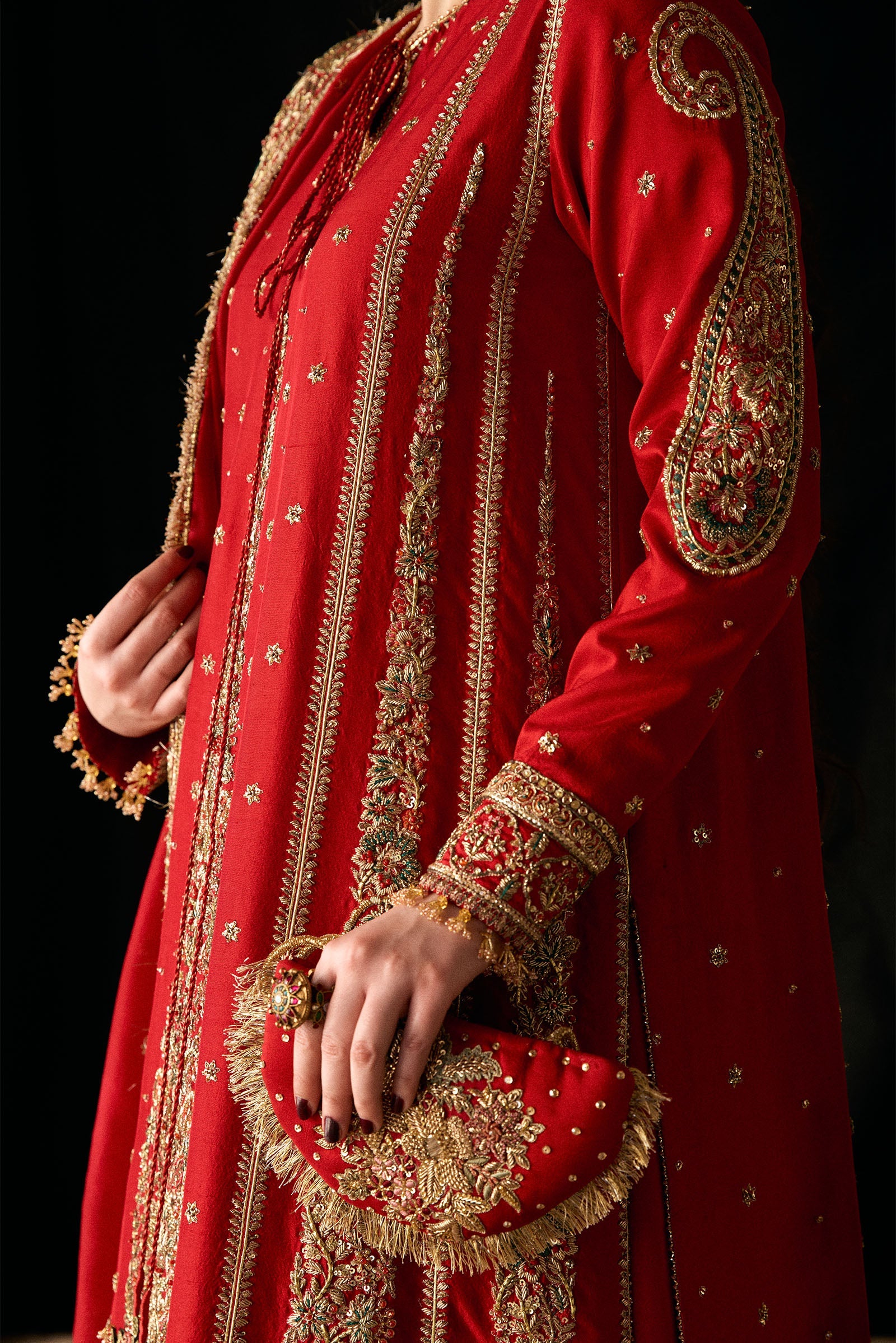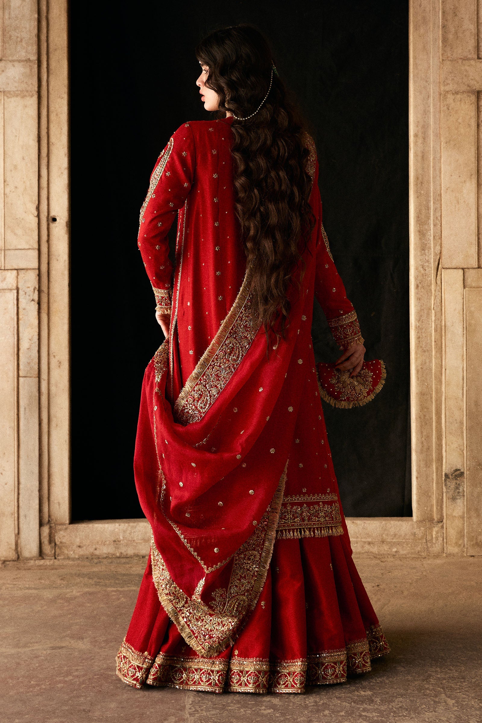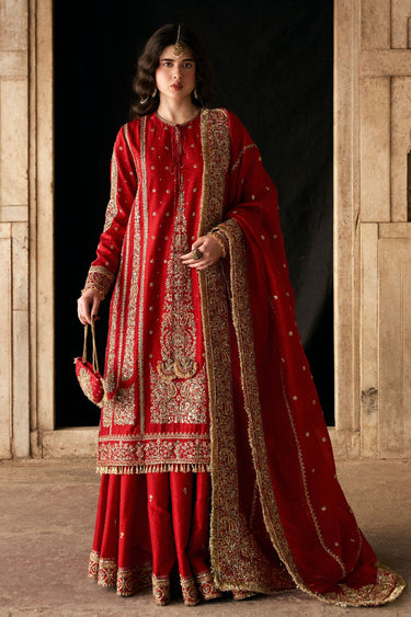 Each detail is meticulously handcrafted, creating a richly textured surface and a luminous finish that reflects timeless elegance and artisanal mastery. Gulrukh embodies refined opulence for the bride who appreciates heritage craftsmanship and intricate design.