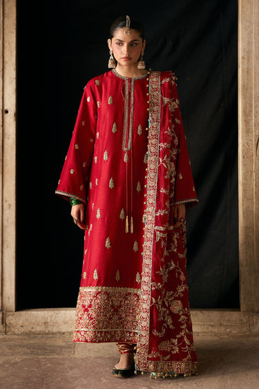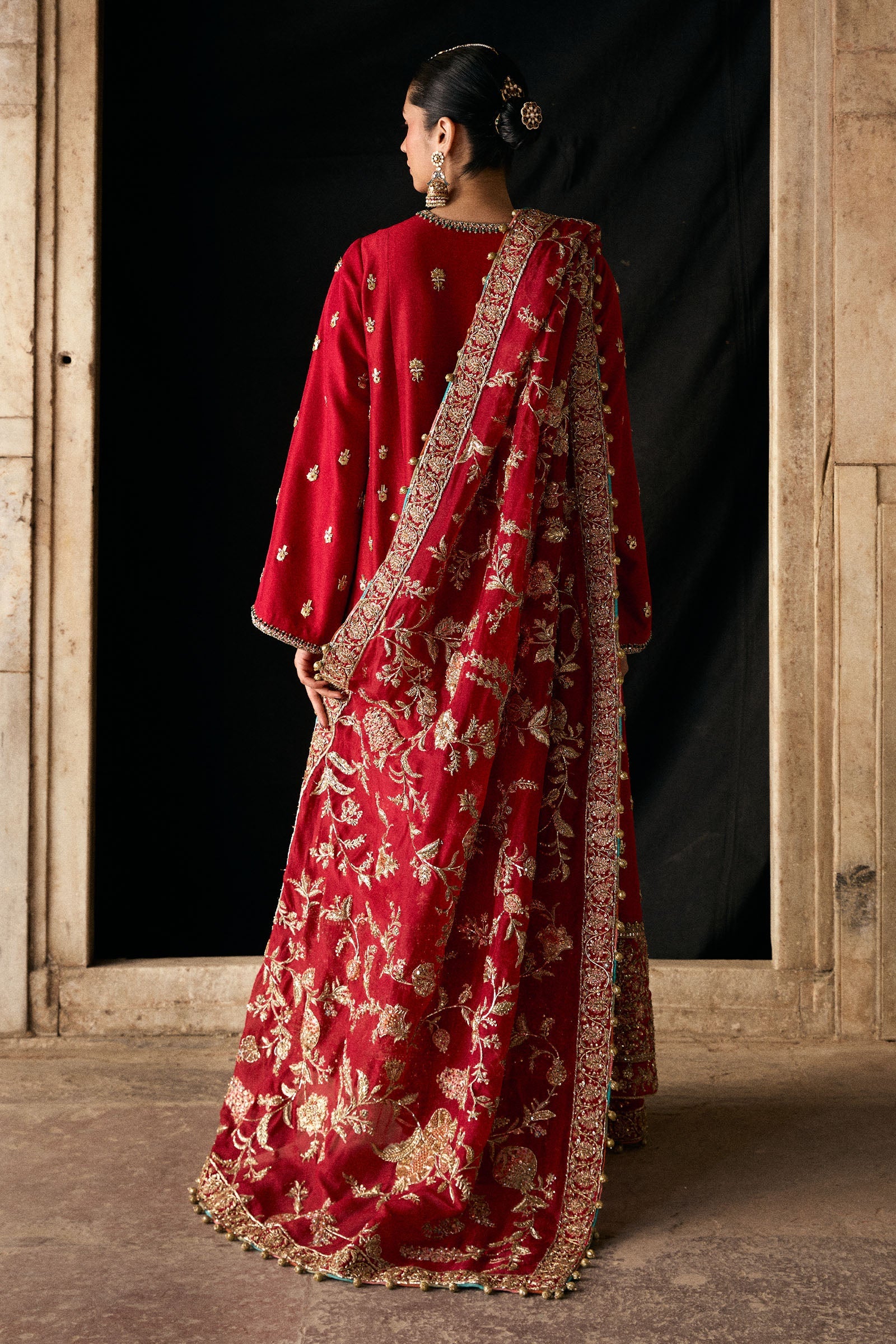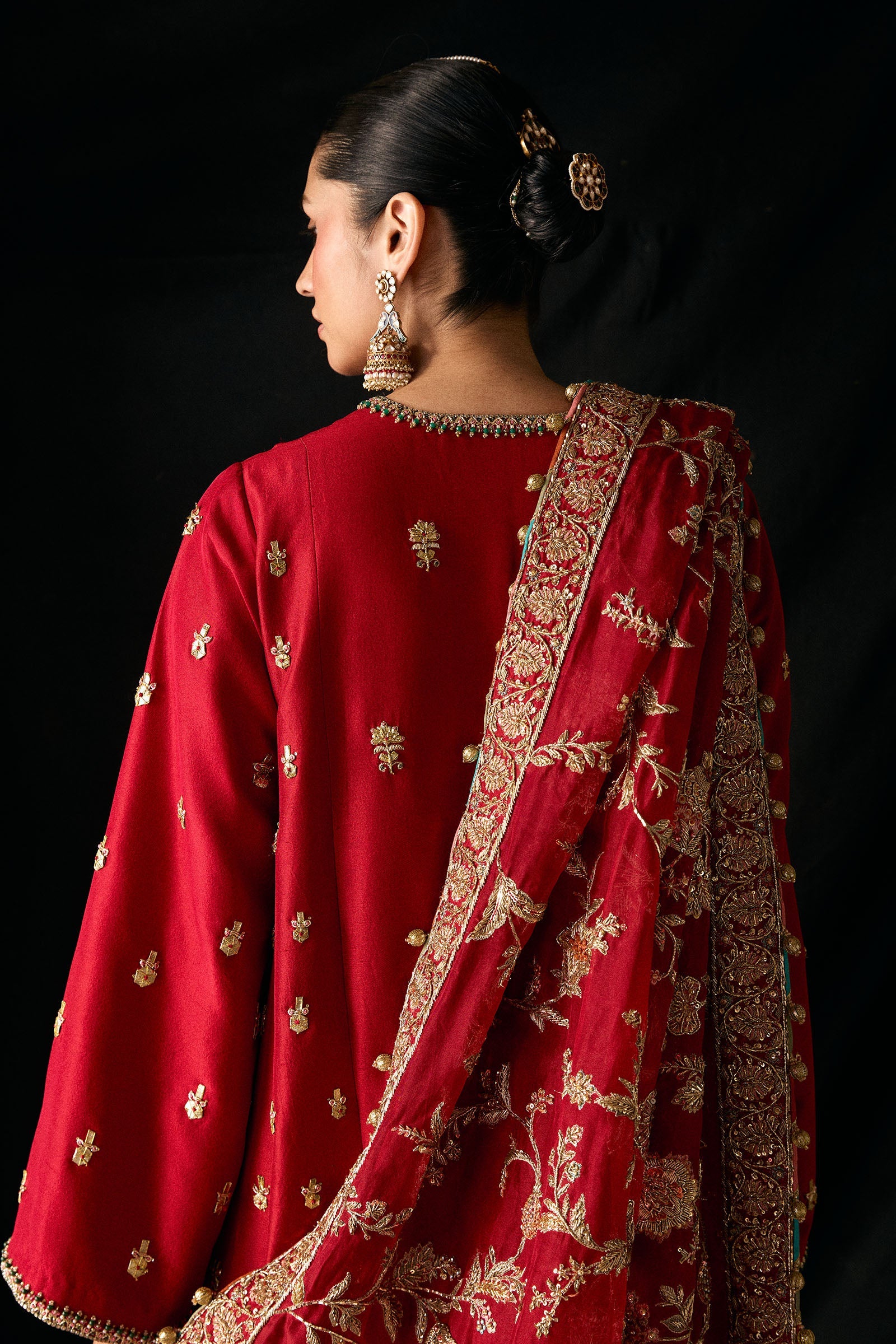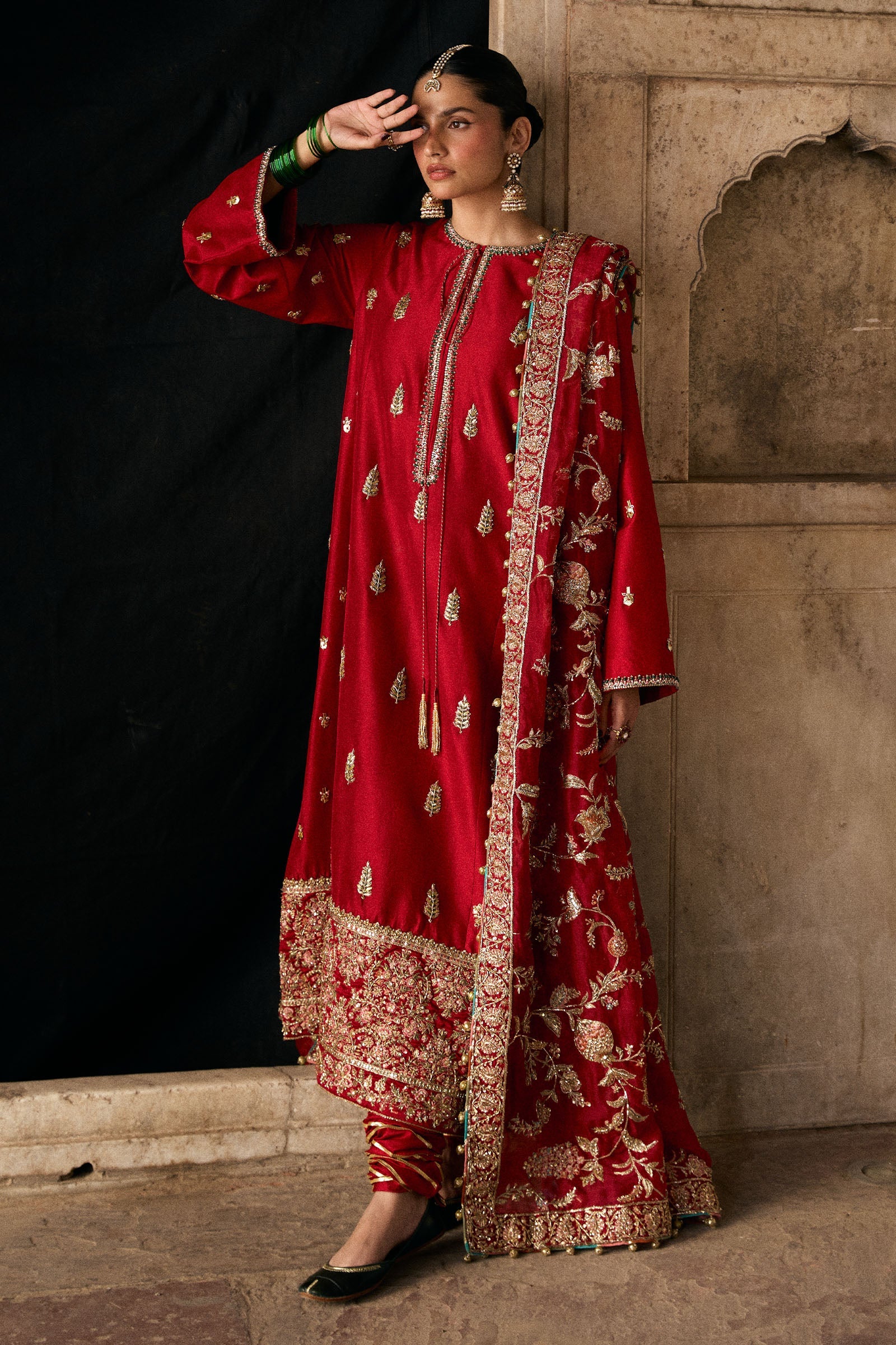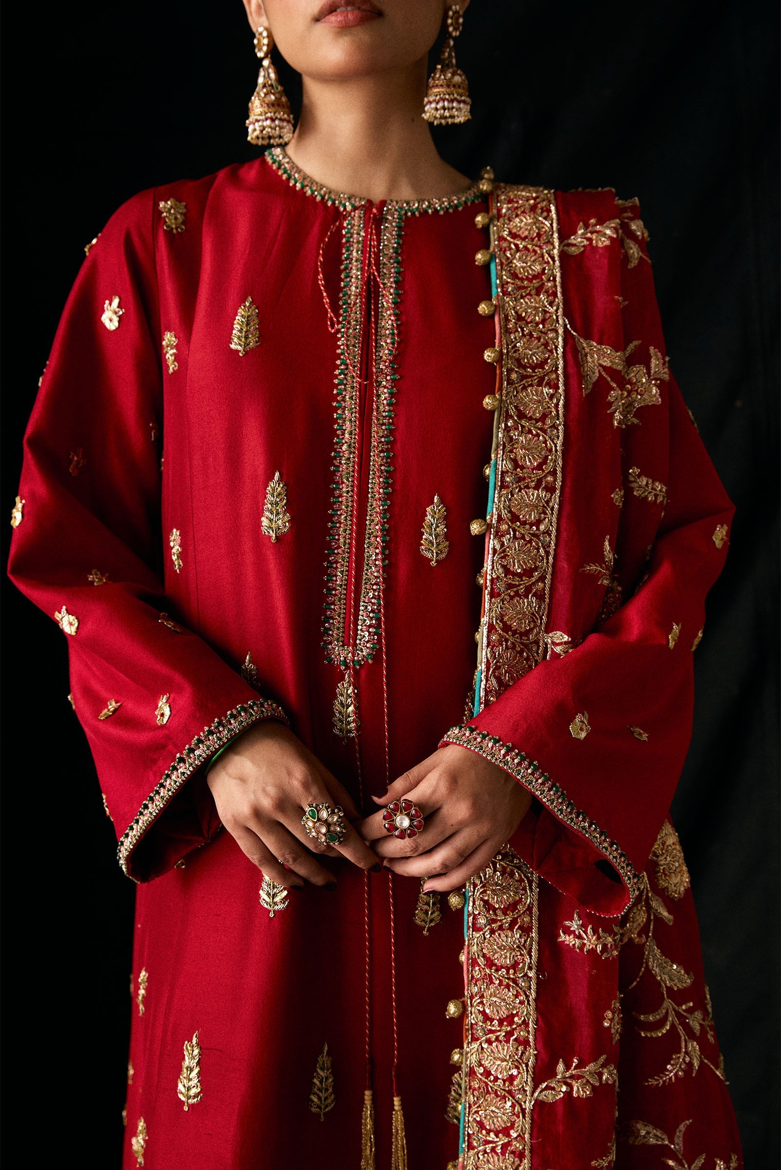 Enhanced with delicate Gotta accents and refined Resham embroidery, the ensemble carries an effortless balance of depth, elegance, and timeless charm. Shehnai reflects the beauty of heritage craftsmanship and the joy of festive celebration.