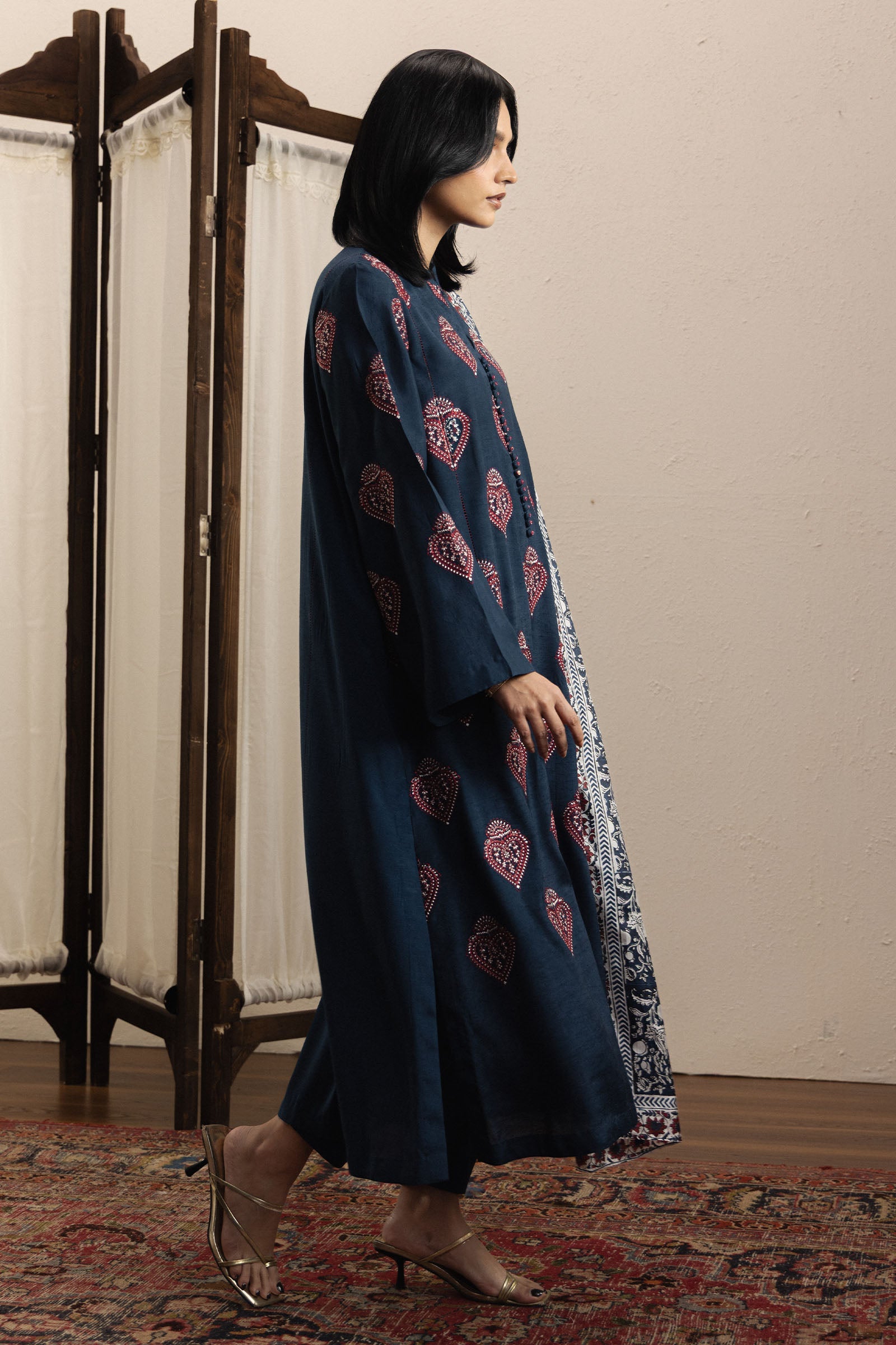 A block-printed medium silk dupatta completes the ensemble, bringing a subtle yet vibrant accent that complements the kurta’s intricate embroidery. Noorbahar embodies Zara Shahjahan’s philosophy — where traditional artistry, graceful silhouettes, and meticulous detailing converge to create festive wear that is timeless, elegant, and effortlessly refined.