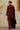 Our short red tunic kurta is paired here with wide hem pants and detailed with contrasting finishes and an applique finished shawl.