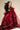A striking red organza Anarkali, delicately embroidered with scattered rose motifs in shades of red and green. The fitted sleeves and hem are finished with a deep green silk border and scalloped edging, adding a graceful contrast. It is paired with a red Korean silk lehenga adorned with a zig-zag gota pattern for that perfect look.
