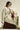 An ivory four-panel kurta in Korean raw silk, adorned with golden badla chatta embroidery. The matching shalwar carries a wide embroidered hem with intricate badla, tila, and sequin detailing. Completing the look is a contrast rust-red dupatta, framed with an off-white border and highlighted with four central leaf motifs.