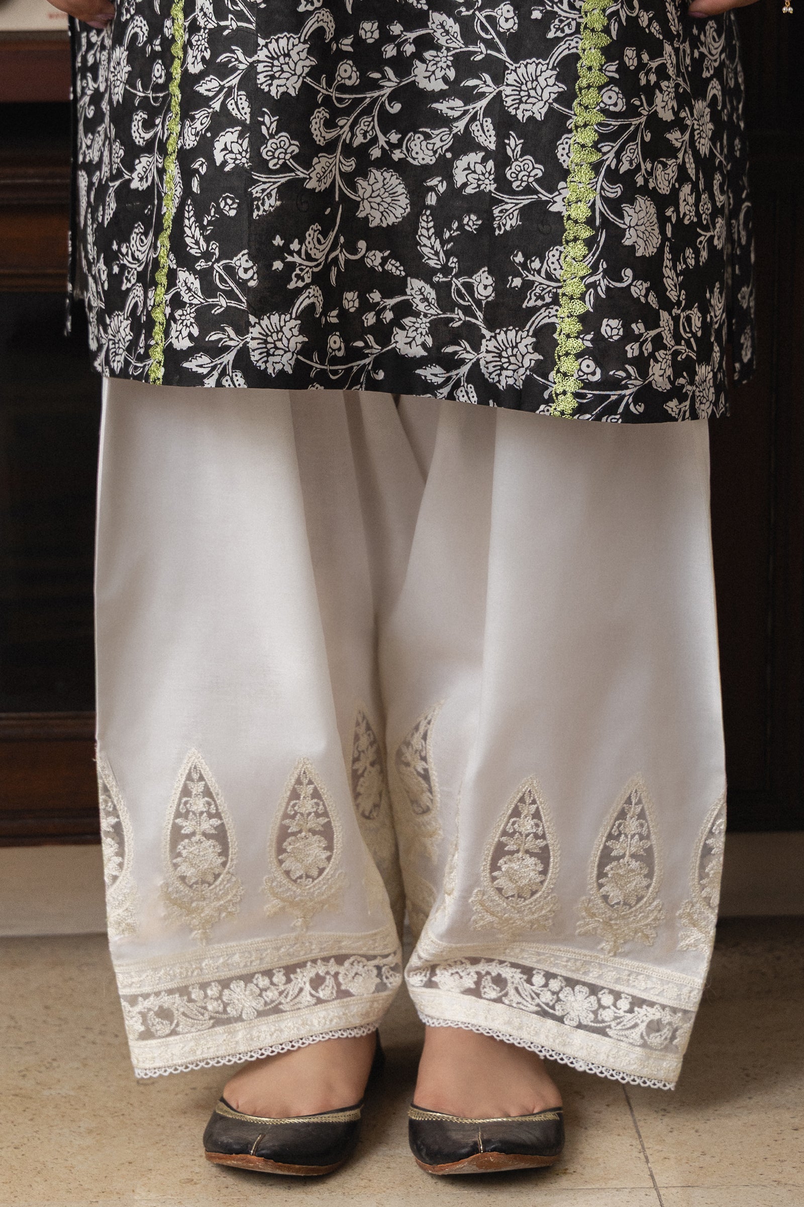 Nazni is a classic shalwar designed with simplicity and ease in mind. The timeless silhouette ensures comfort and versatility, making it an everyday essential. Delicate aari work on the hem adds a subtle hint of craftsmanship, elevating its minimal aesthetic while keeping it effortlessly wearable.