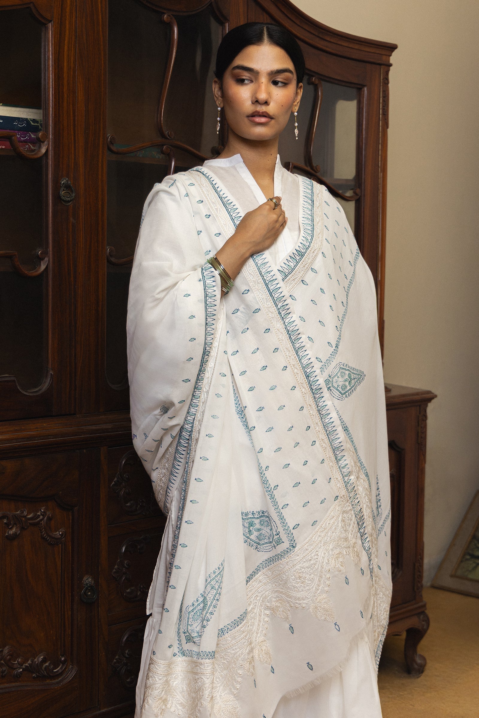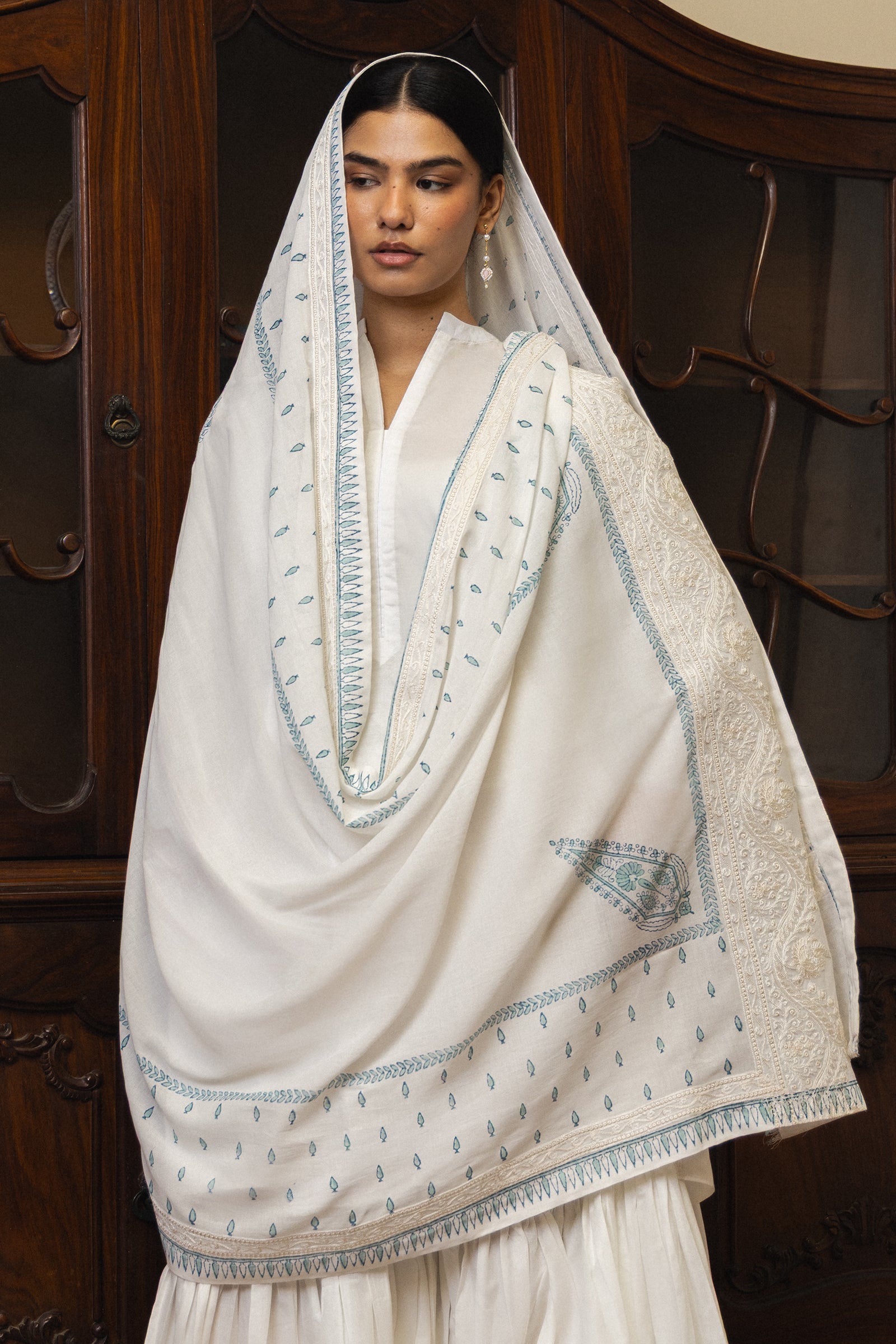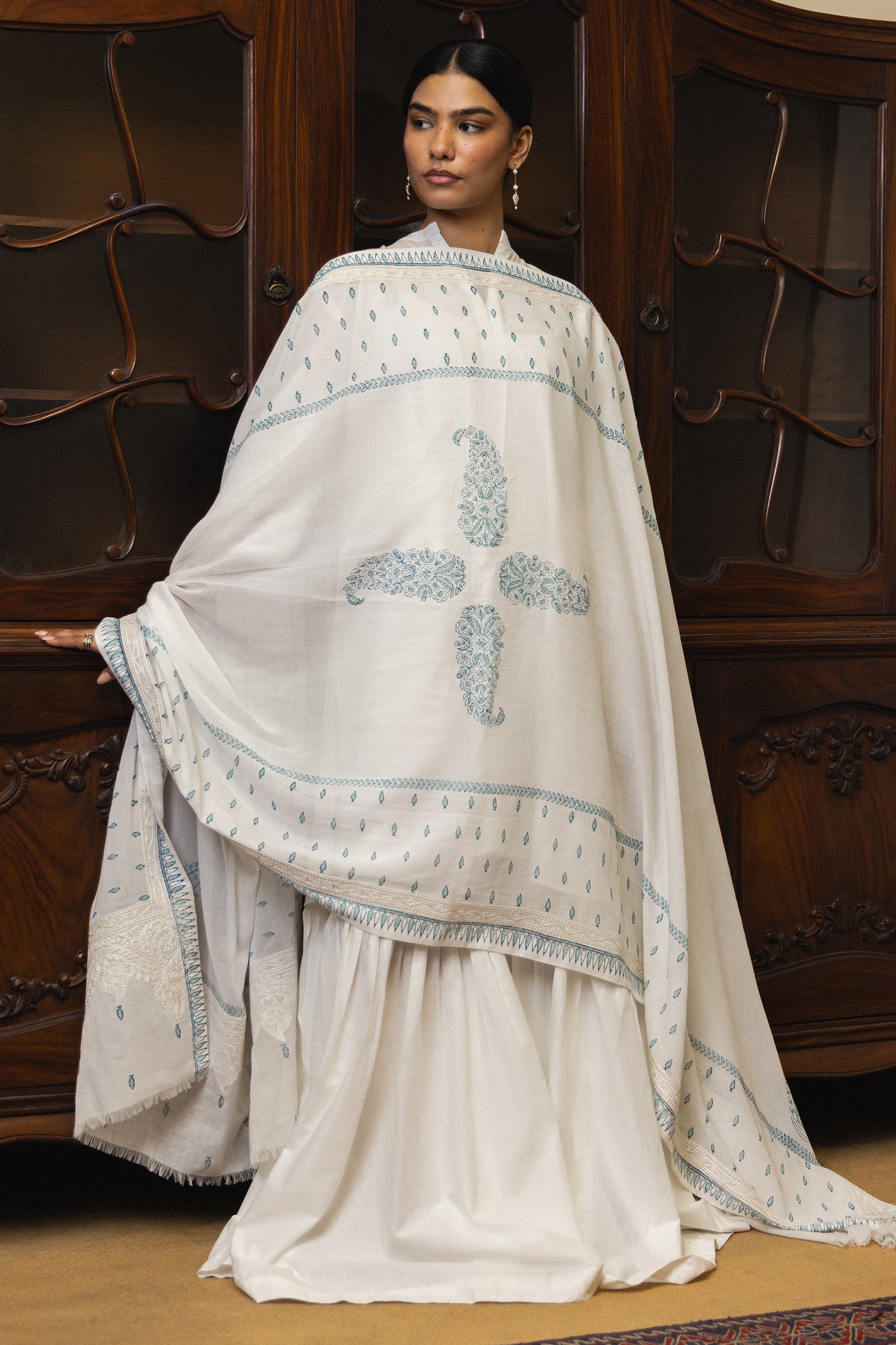 Hunar is a handcrafted dupatta that celebrates intricate detail and refined tradition. Designed on a light Swiss voile base, it features all-over delicate printing, elevated with a four-sided embroidered border. The pallu is richly detailed, adding depth and visual interest, while the frayed edge finish brings a soft contemporary ease. Hunar beautifully balances heritage craftsmanship with modern sensibility, making it a versatile piece for both everyday and elevated ensembles.